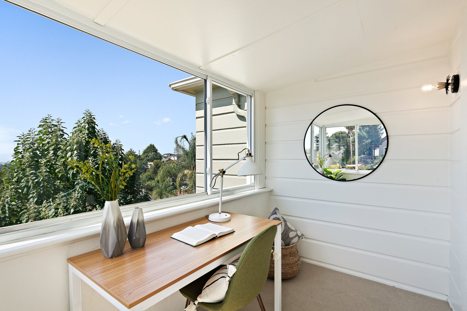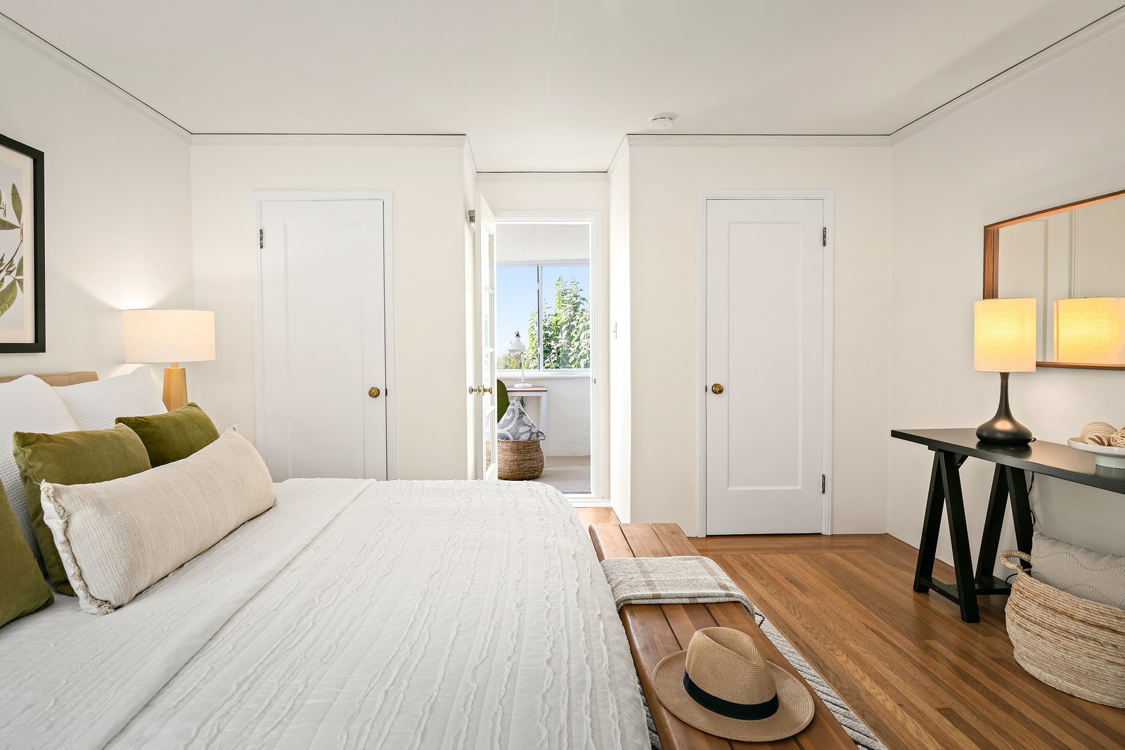 The primary bedroom includes a sunroom with Bay views, previously used as a home office, creating a flexible and light-filled retreat.